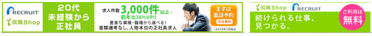企業への紹介は履歴書などを提出するのではなく、「面接」からスタート。利用者様が自分らしく働ける企業を一緒にさがし紹介。利用者様の強みを引き出す模擬面接、今まで培ってきた強み、自分の思いや可能性を伝えられるよう、自己アピール力を磨くサポート。求人は全て訪問取材済み、企業のこと、仕事内容を直接丁寧に取材。未経験でも正社員として活躍できる求人をご紹介。利用者様一人一人に個別サポート、一人一人に専任のキャリアコーディネーターがつき、就職をサポート。一般の就職活動にくらべ、非常に効率的で、納得感もあり、決定までのスピードが速い。面談から求人紹介、面接設定、就職決定まですべて無料。就職shopは会うから始まる駅近ロケーション。書類選考なしで面接へ、未経験者歓迎の求人中心。あなたの課題を個別対策で、成功までの流れがスムーズ!【リクルートが運営】既卒・フリーターに強い求人紹介:就職Shop ![]()
