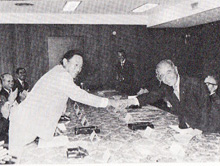 - ラジオ、TVの放送局では、信頼性向上のため番組自動運行装置が求められていた。NHKの技術指導を受けて昭和43年にニュース番組自動送出装置を納入し、続いてラジオ自動放送装置、テレビ自動放送装置を開発した。これらは、ICによるハード型の自動装置だったが、48年にNHK放送センターが渋谷に移転した際、ミニコンピュータ制御による新型のニュース番組自動送出装置を納入した。